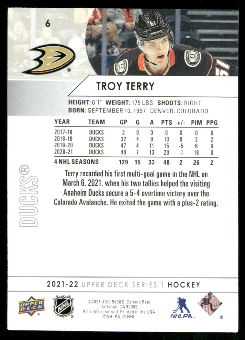 هذا مثال جميل لـ 2021-22 Upper Deck #6 Troy Terry