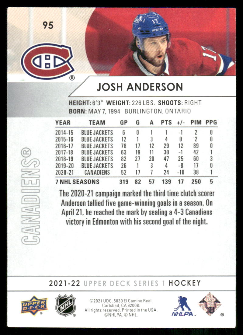 هذا مثال جميل لـ 2021-22 Upper Deck #95 Josh Anderson