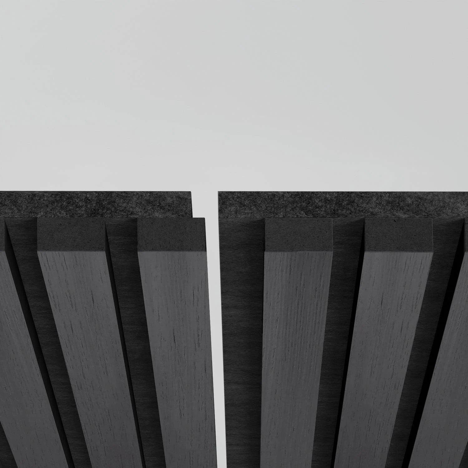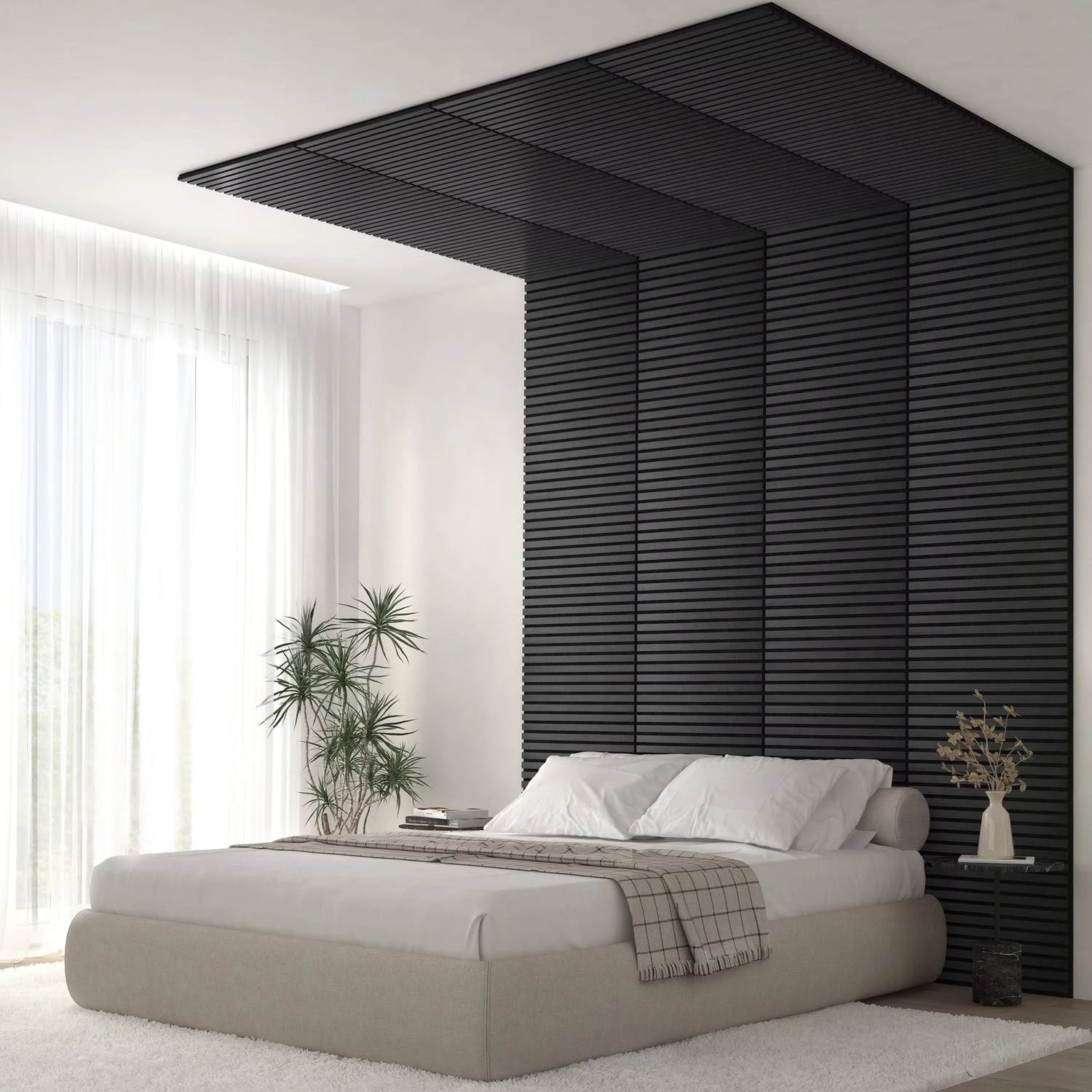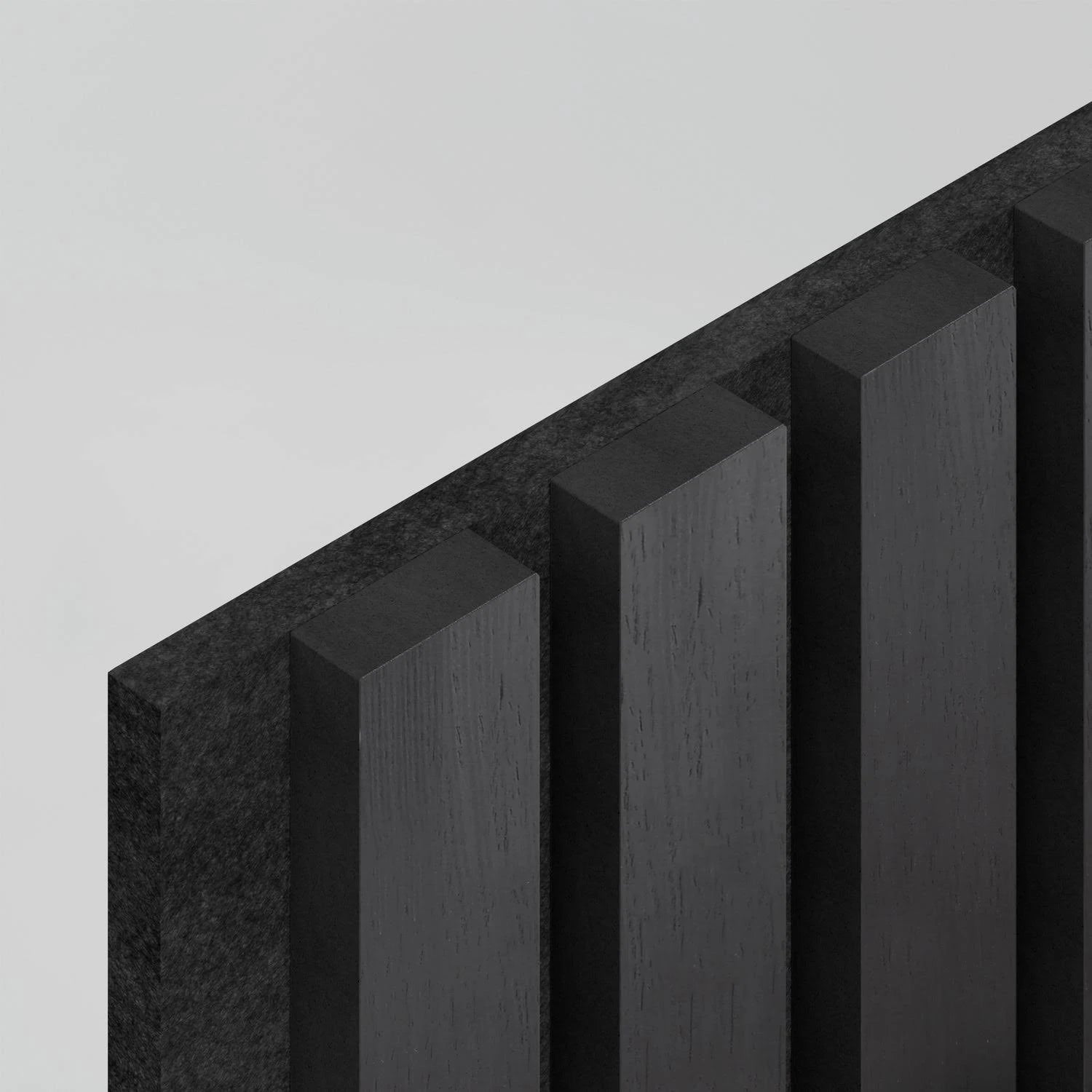 These acoustic slat panels feature an oak finish, making them ideal for living rooms, especially behind the television or other AV gear. The stylish wooden slats complement your walls, while the felt lining absorbs sound. In the bedroom, these panels can also serve as a comforting headboard. For a more impactful effect, extend them to the ceiling.