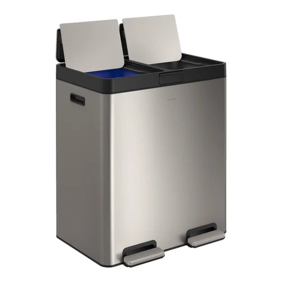 Crafted with thoughtful details and smart functionality, the KOHLER® dual-bin step trash can collection will simplify your daily home routine and meet the style demands of its surroundings. This 82-liter step trash can has been designed to fit any brand of 13-gallon trash bags. Each bin has a Quiet-Close™ bifold lid which slides open with its own sturdy foot pedal, allowing for hygienic, hands-free use. The trash can has an efficient footprint with clean lines and flush features, so it can be placed in compact locations — right against the wall or cabinets — with a unique lid design that stays clear of its surroundings during operation and bag changes.