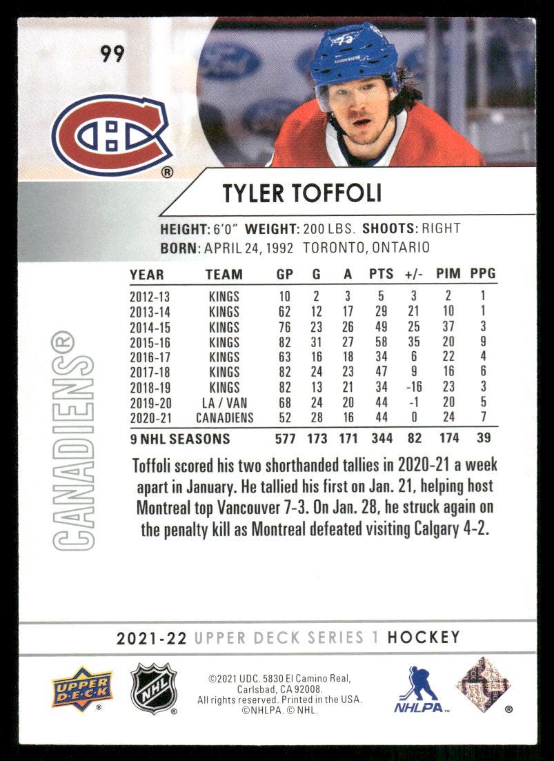 This is a nice example of a 2021-22 Upper Deck #99 Tyler Toffoli