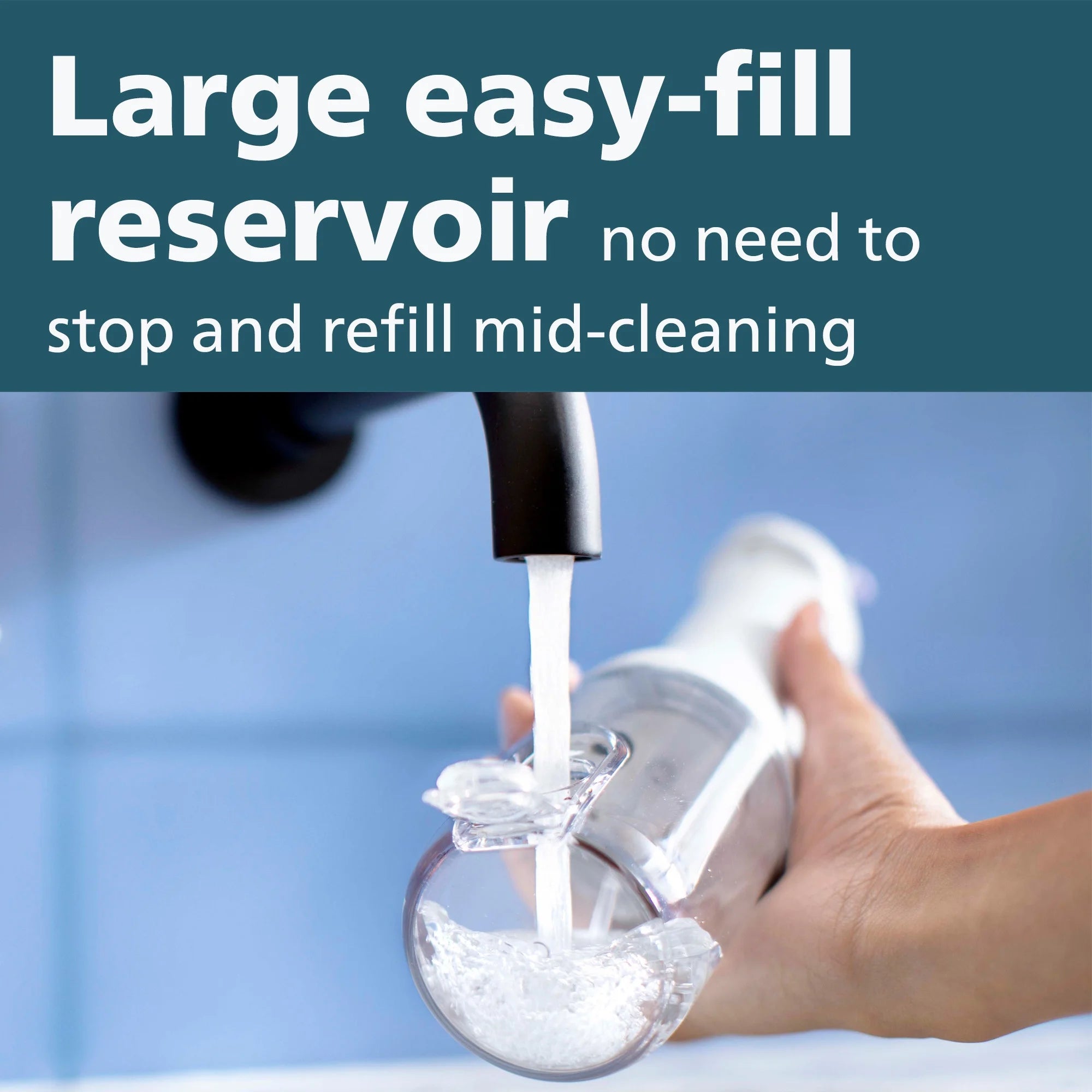 - Cordless design is slim, portable, and requires effortless technique. 360-degree nozzle rotation ensures you can reach every corner of your mouth