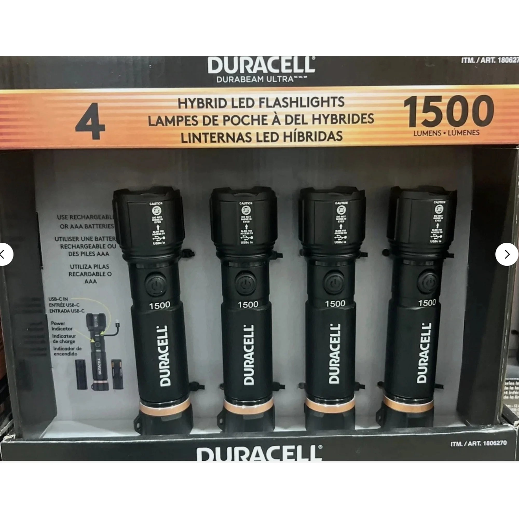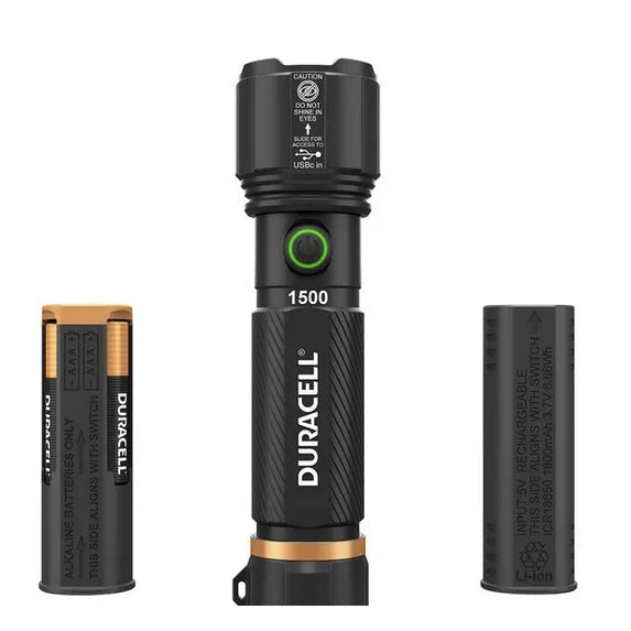 Duracell Hybrid Flashlight, 1500 Lumens, 4 ct