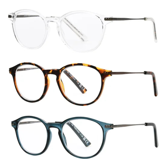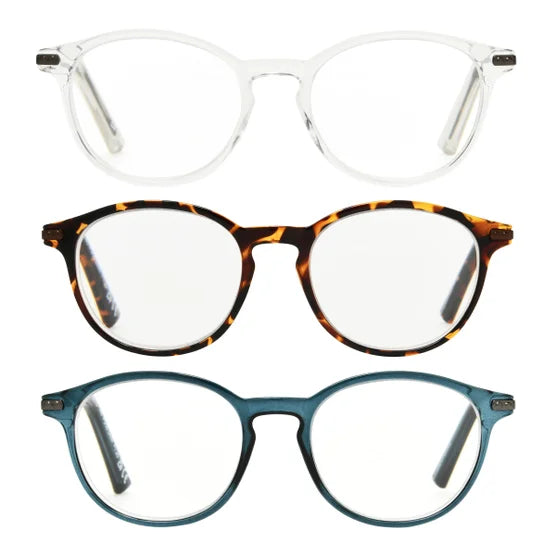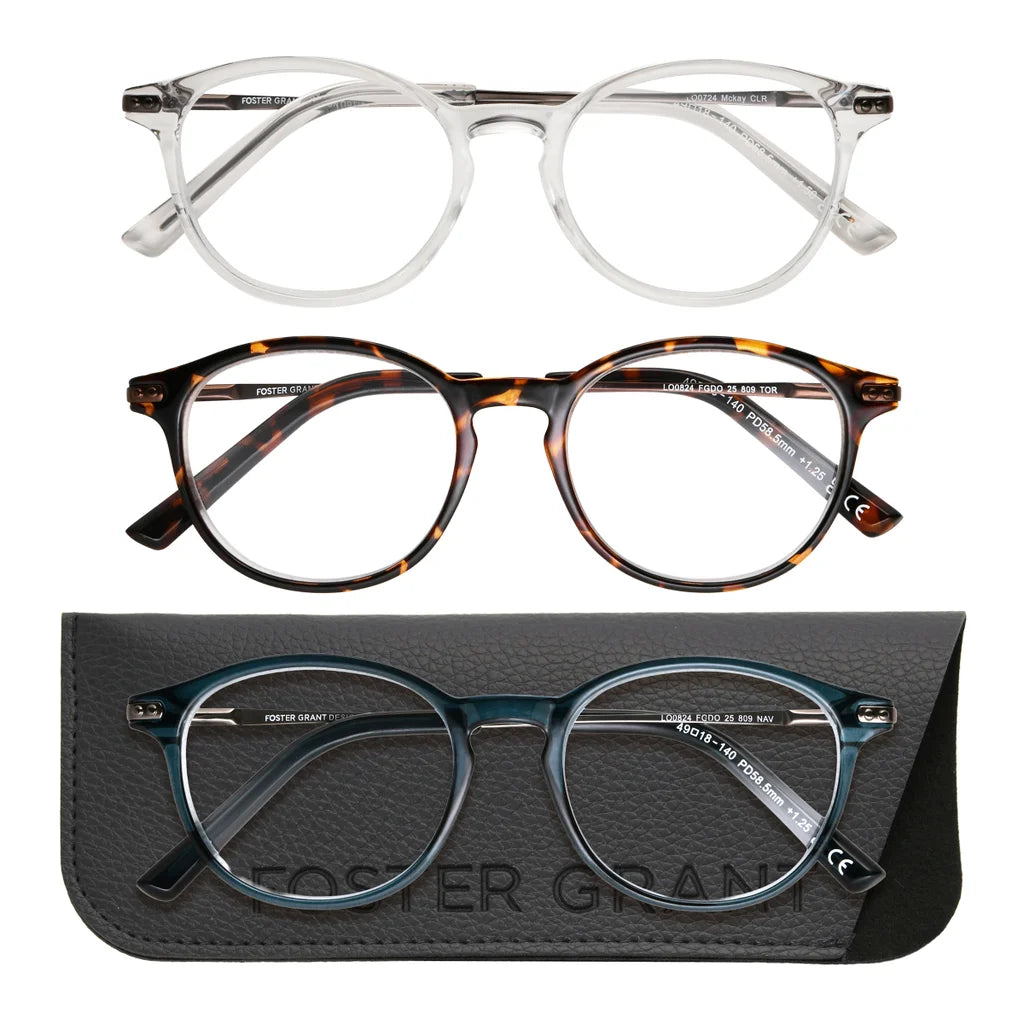 Design Optics by Foster Grant Classic Plastic Round Reading Glasses, 3-pack