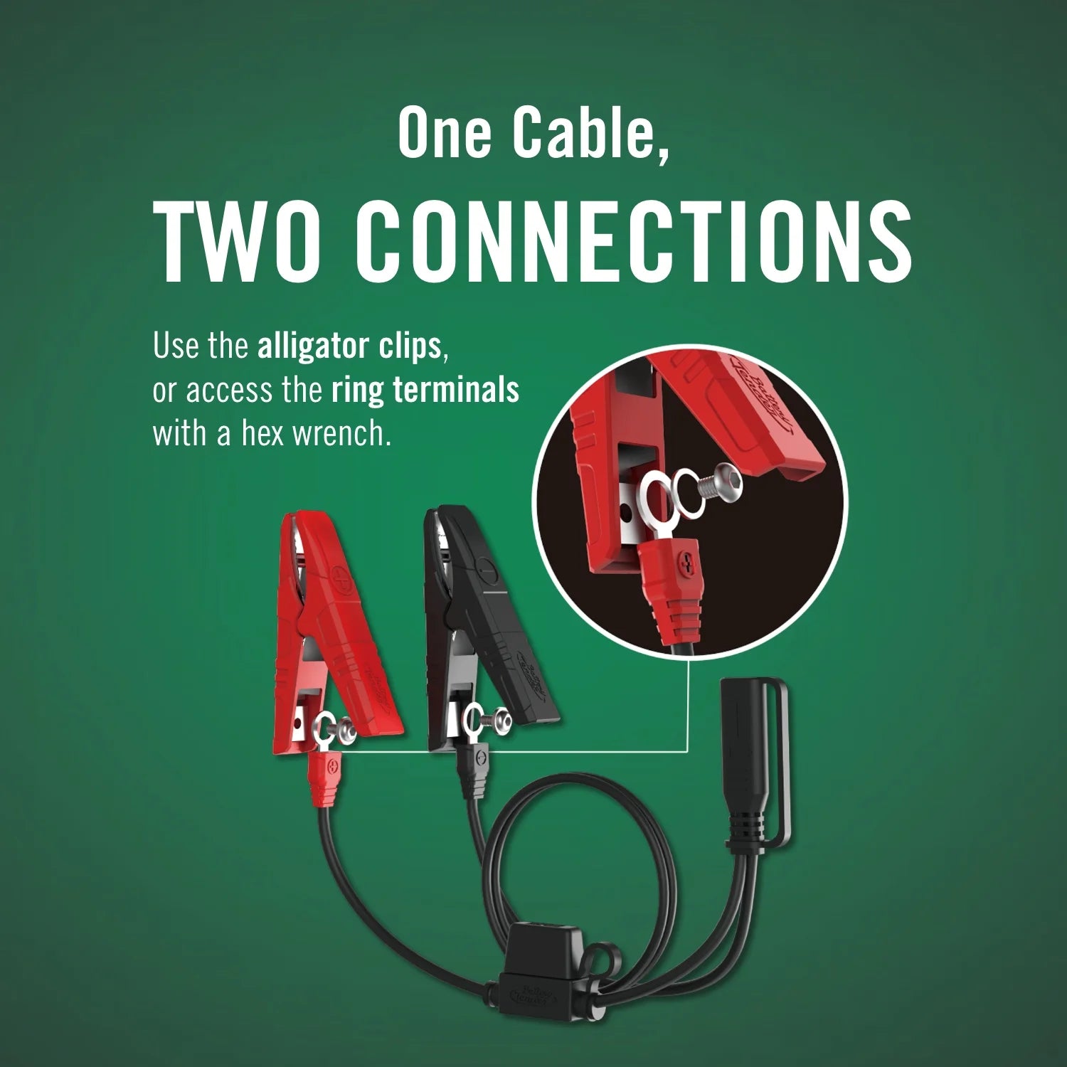 - INCLUDES: 5 amp battery charger, ring terminal and alligator clip combo cable, 5 year