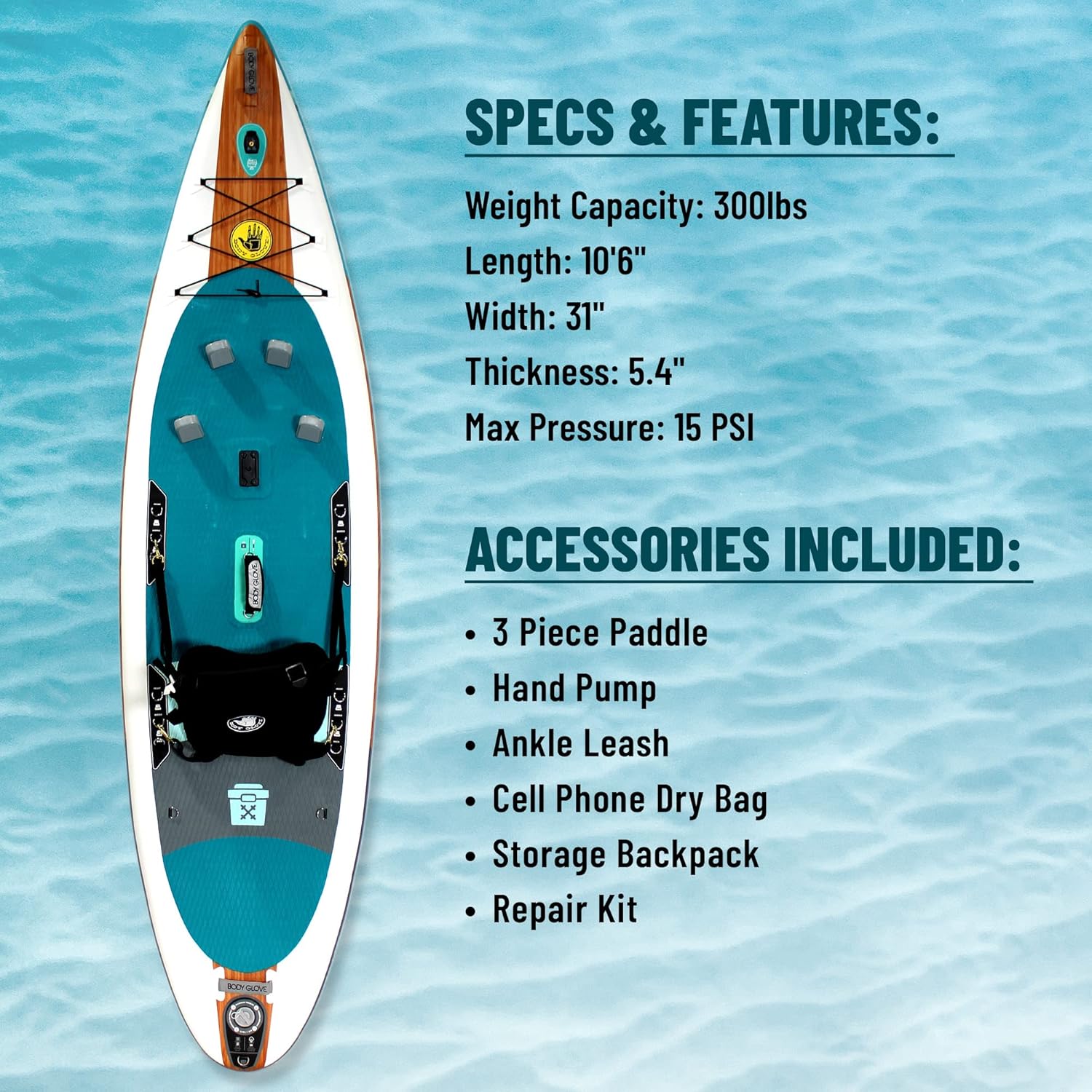 - FOR ALL PADDLERS- This sleek board is adventure-ready and crafted to meet the needs of paddlers of all levels. 10'6 ft X 31 in X 5.4 in inflatable Kayak, 27-lb. weight, 300 lb capacity