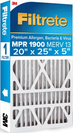 Filtrete™ MPR 1900 and MERV 13 – 5” Air Filters, made by 3M, helps capture unwanted particles from your household air to contribute to a cleaner, fresher home environment. Designed with exclusive Filtrete™ 3-in-1 technology, your AC filter will help pull and capture countless microparticles – such as pet dander, smoke, bacteria – while letting cleaner air flow through. Your Filtrete™ Filter will also capture large particles, including lint, pollen and household dust. Use a pleated 5-inch home HVAC filter in your compatible furnace, air conditioner or HVAC system.