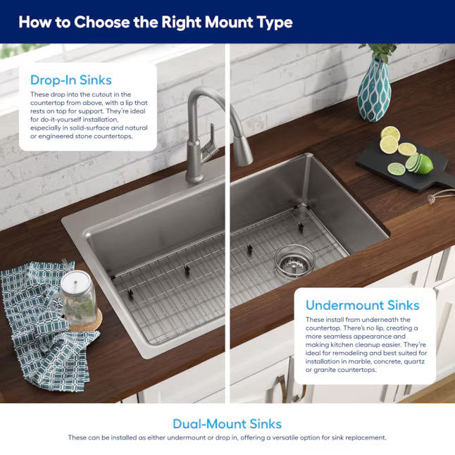 • KOHLER stainless steel sinks resist corrosion and tarnishing