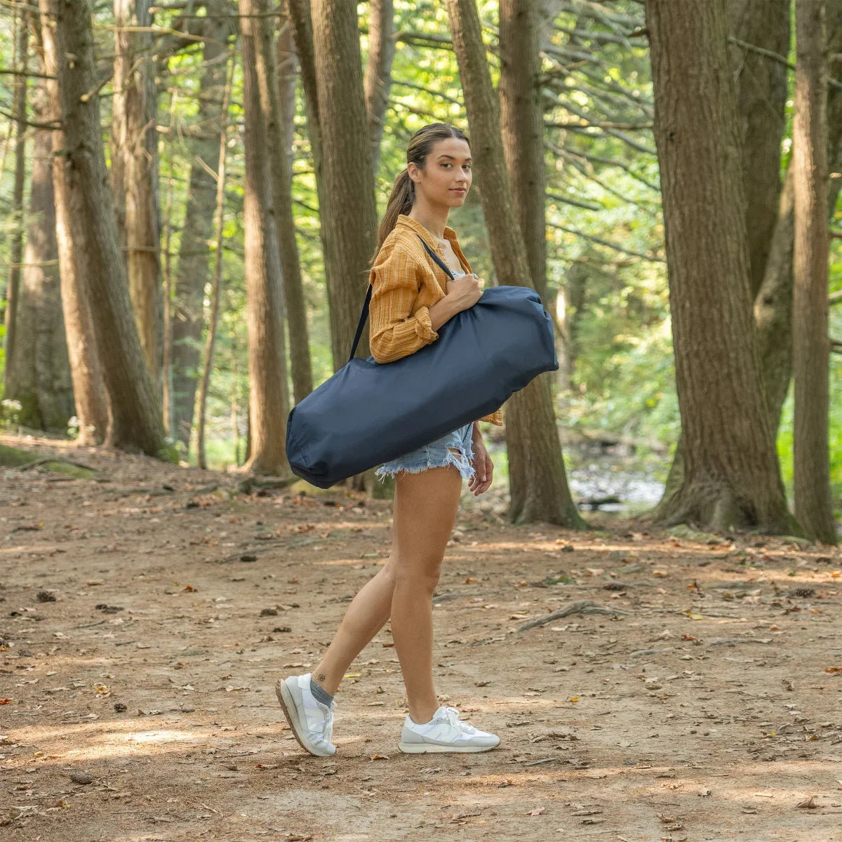 No matter the season, you can relax and enjoy your outdoor adventures with this swinging hammock chair with a built-in footrest. The chair sets up easily and folds into a carry bag for simple storage. The rugged seat cover is made of breathable, water-resistant polyester that keeps you cool on warm days in the sun. The adjustable footrest strap lets you rest your feet while you lay back and relax. This chair brings the comfort of home to the campground, festival, and anywhere else you want to get away to.