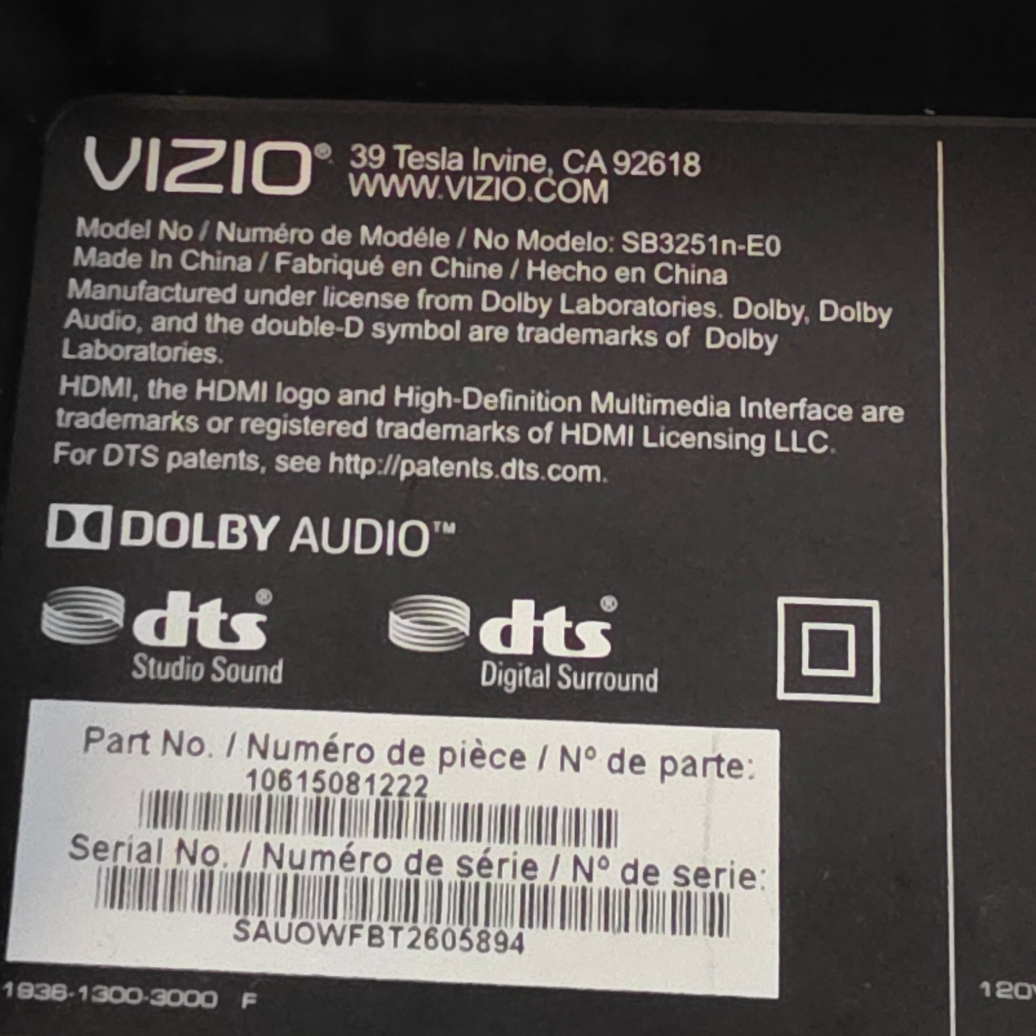 • 将图片加载到图库查看器,Vizio SmartCast 38" 5.1-Channel Soundbar System (model SB3851-D0).