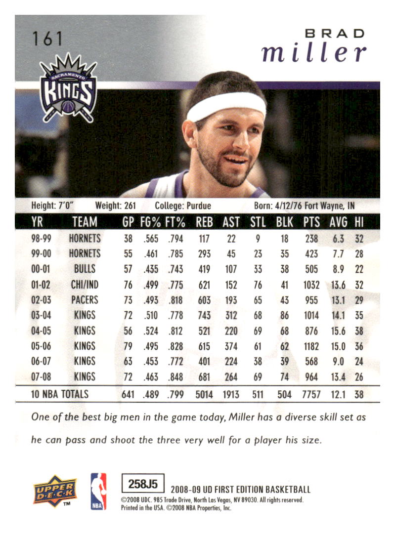 هذا مثال جميل لإصدار 2008-09 Upper Deck First Edition #161 من تصميم Brad Miller