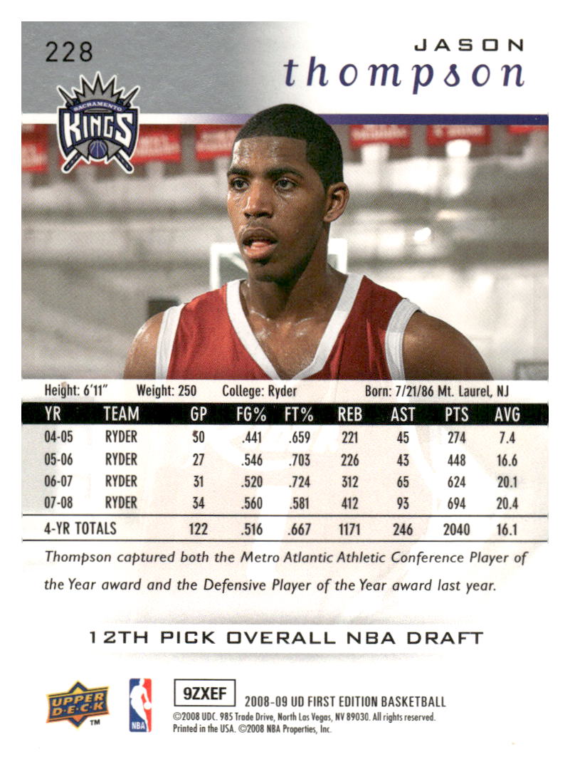 هذا مثال جميل لإصدار 2008-2009 Upper Deck First Edition #228 من تصميم Jason Thompson