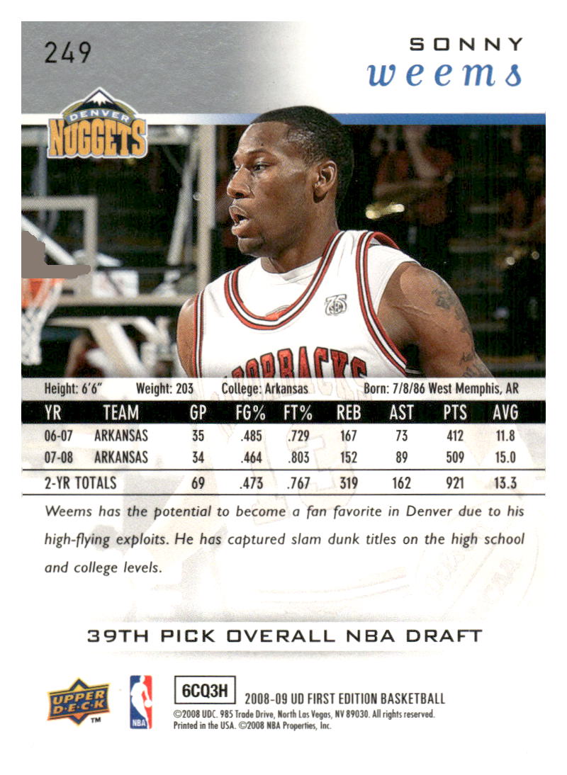 هذا مثال جميل لإصدار 2008-09 Upper Deck First Edition #249 من Sonny Weems