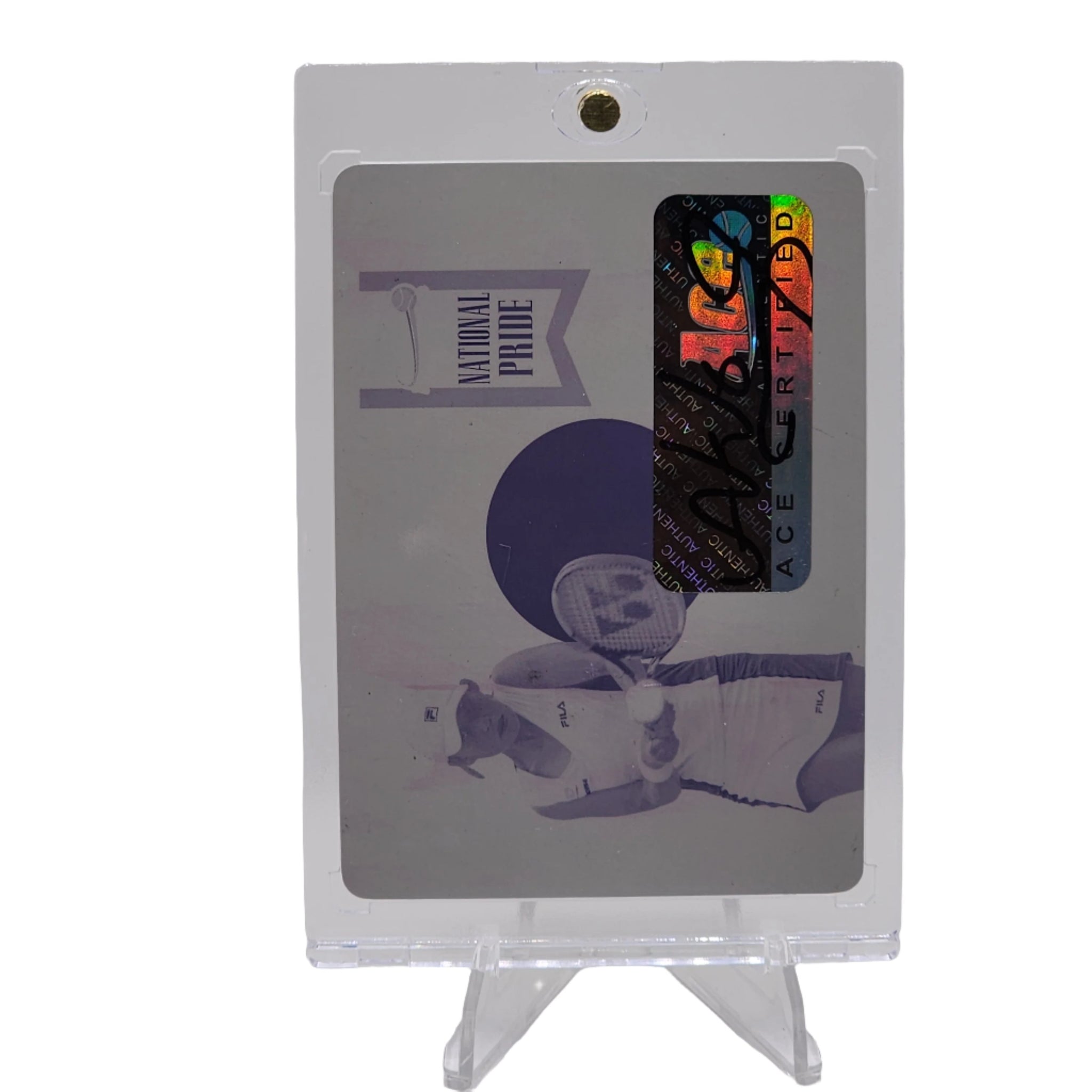 استمتع بعنصر جامع مثالي مع هذه اللوحة الفريدة من نوعها من Leaf National Pride Magenta Plate 1/1 من Annika Morigami 2013 والموقّعة. تُبرز هذه اللوحة النادرة الموقعة مهارة وموهبة لاعبة الجولف المصنفة الأولى Annika Morigami، مما يضيف قيمة إلى أي مجموعة. لا تفوت هذه القطعة المرموقة من تاريخ الرياضة.