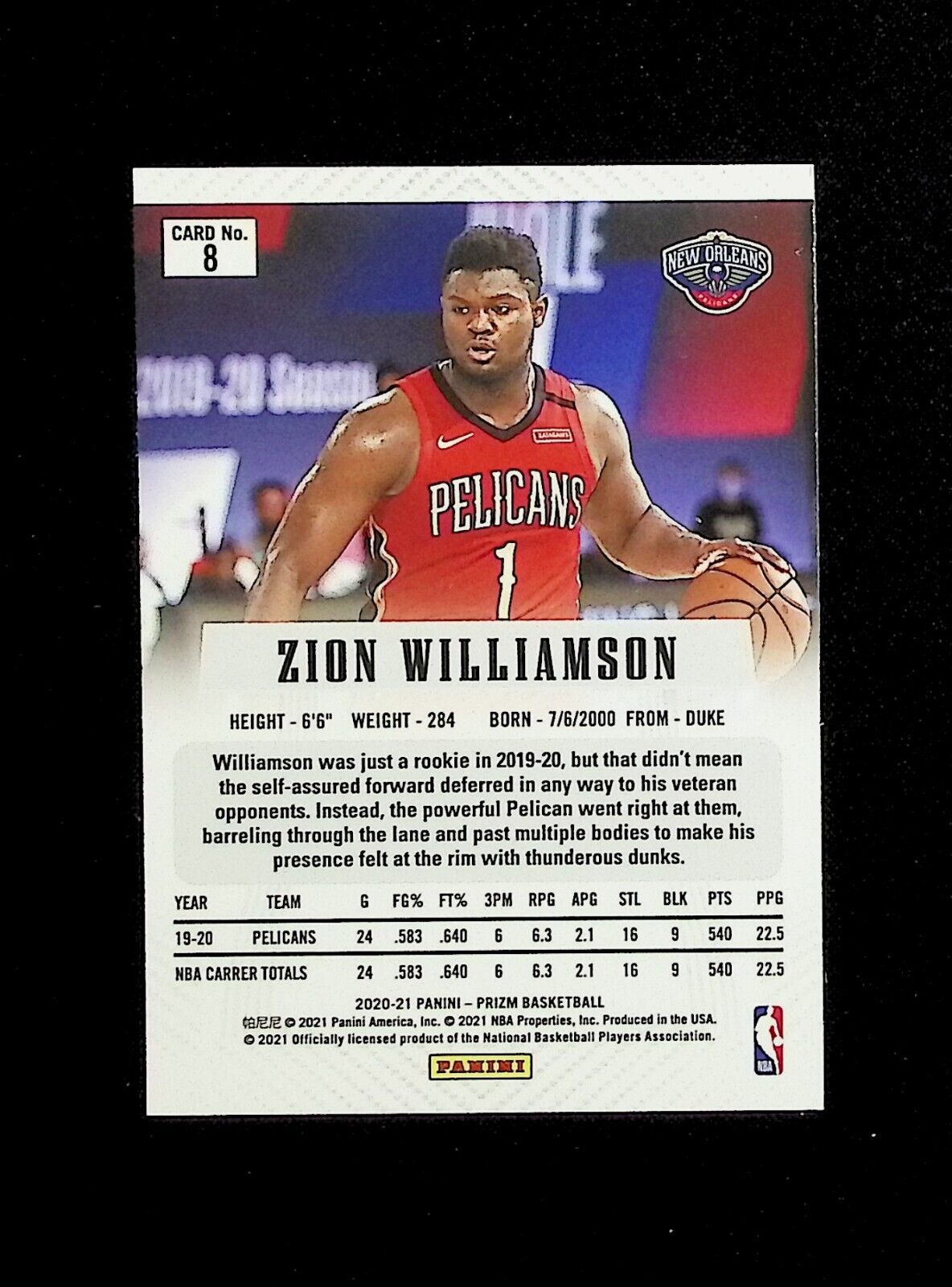 التقط الحركة المثيرة لـ Zion Williamson مع بطاقة Panini Prizm Silver Flashbacks Zion Williamson #8 New Orleans Pelicans 2020-21. مثالية لأي مشجع رياضي يتطلع إلى إضافة عنصر قيم إلى مجموعته، من المؤكد أن هذه البطاقة ستثير الإلهام والبهجة!