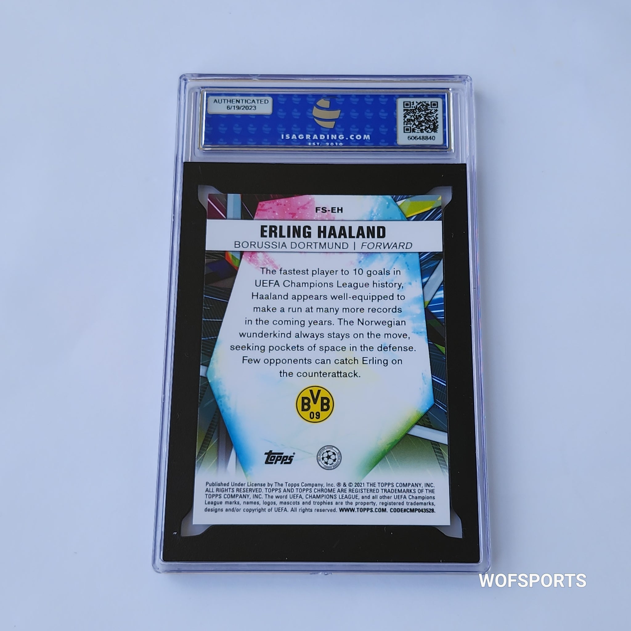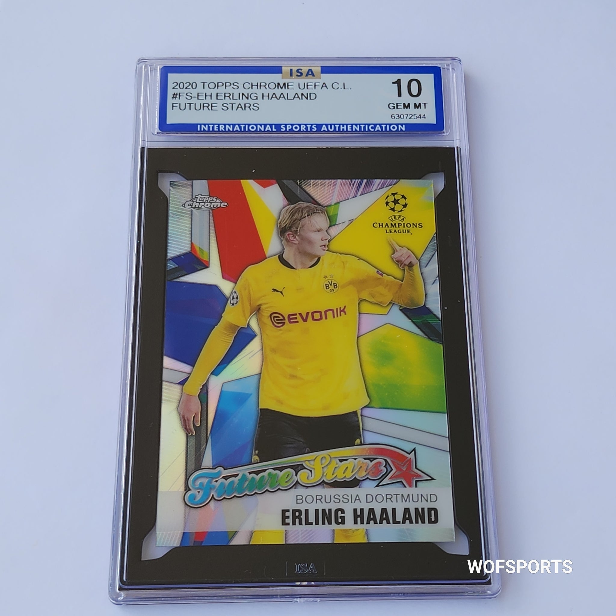 استعد لإضافة بطاقة نادرة وقيمة إلى مجموعتك مع بطاقة Topps Chrome UEFA CL Future Stars Erling Haaland #FS-EH 2020! تتميز هذه البطاقة بالنجم الصاعد Erling Haaland من بوروسيا دورتموند بتصنيف ISA 10 Gem Mint الرائع. من المؤكد أنها ستكون قطعة مميزة لأي مشجع لكرة القدم.