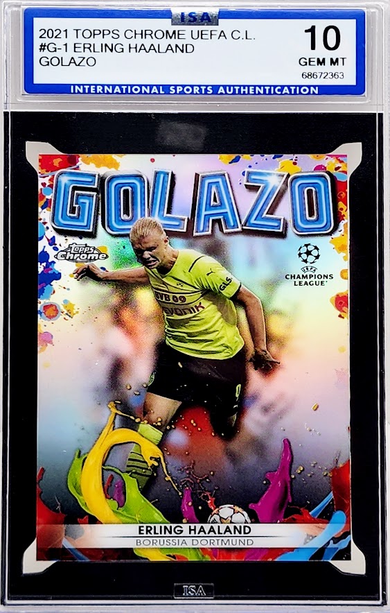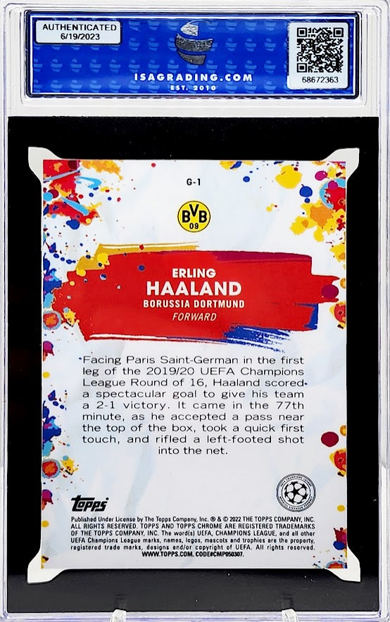 سجل تاريخًا في كرة القدم مع كرة القدم Topps Chrome UCL Golazo Refractor Erling Haaland #G1 2021/22! تتميز هذه المجموعة الرائعة بالإحساس النرويجي في أوج عطائه، مطبوعة على مادة متينة لضمان ذكريات تدوم طويلاً. مع تصنيف ISA 10 Gem MT، فهي تذكرتك إلى مكانة أسطورية!