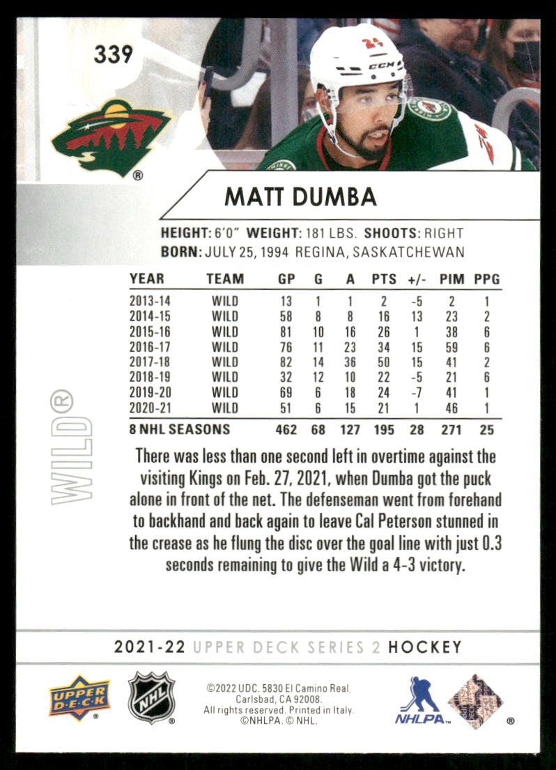 هذا مثال جميل لـ 2021-22 Upper Deck #339 Matt Dumba