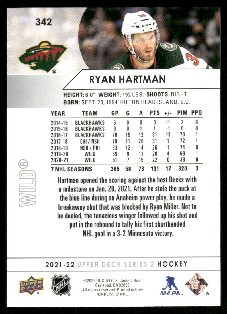 هذا مثال جميل لـ 2021-22 Upper Deck #342 Ryan Hartman