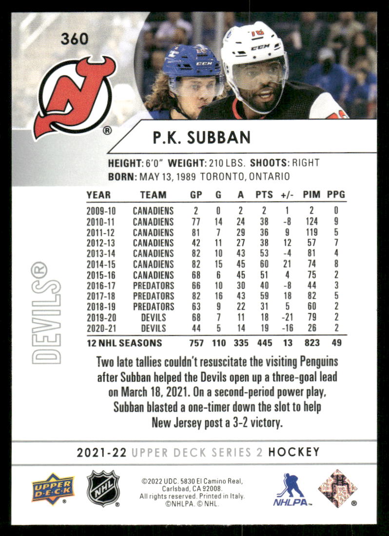 هذا مثال جميل لـ 2021-22 Upper Deck #360 PK Subban