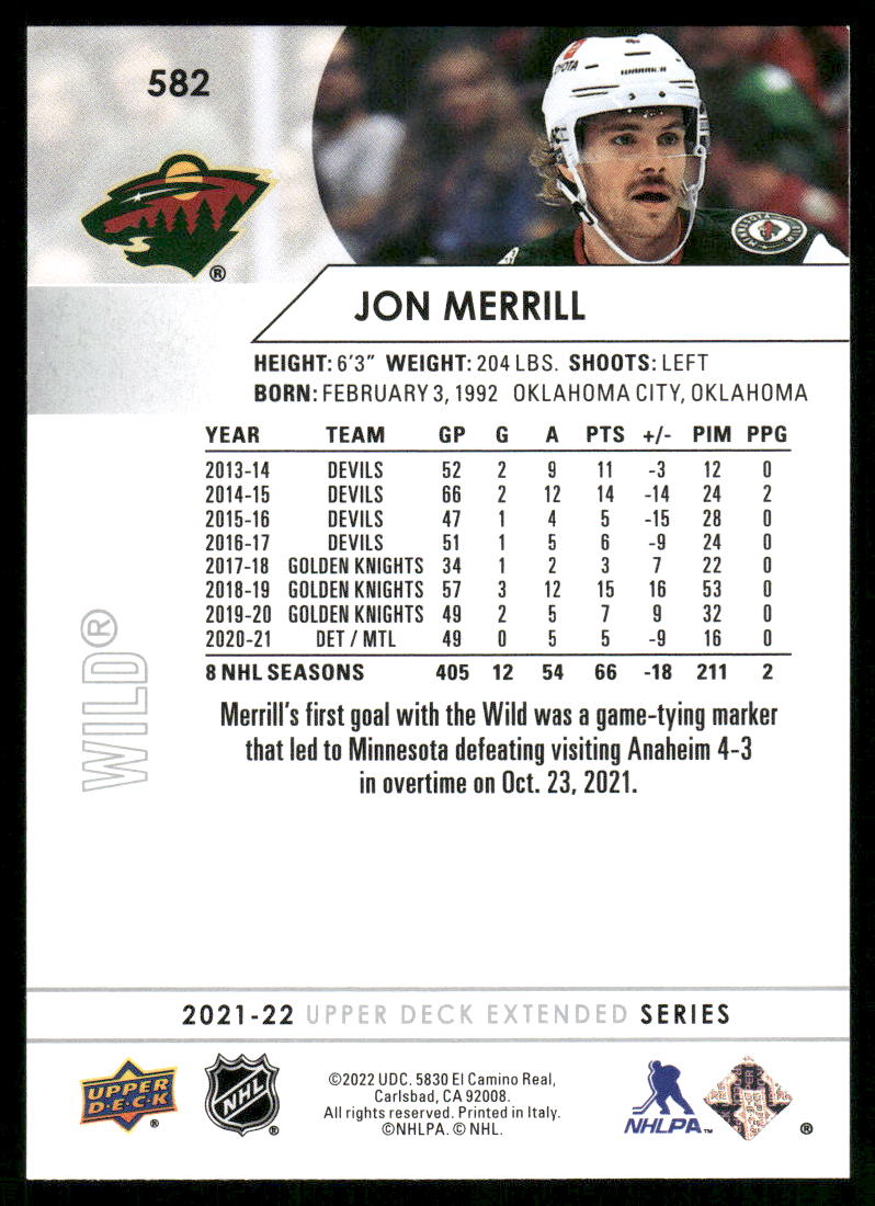 هذا مثال جميل لـ 2021-22 Upper Deck #582 Jon Merrill