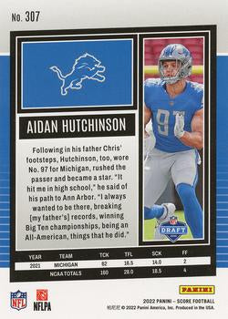 استمتع بإثارة جمع سيارة 2022 Panini Score Rookies Aidan Hutchinson RC #307 Detroit Lions! من المؤكد أن سيارة هذا المتسابق الجديد لهذا العام ستكون إضافة قيمة لمجموعة أي مشجع.