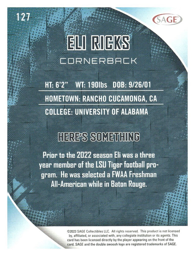 في عام 2023، لعب إيلي ريكس لصالح فريق ألاباما كريمسون تايد.