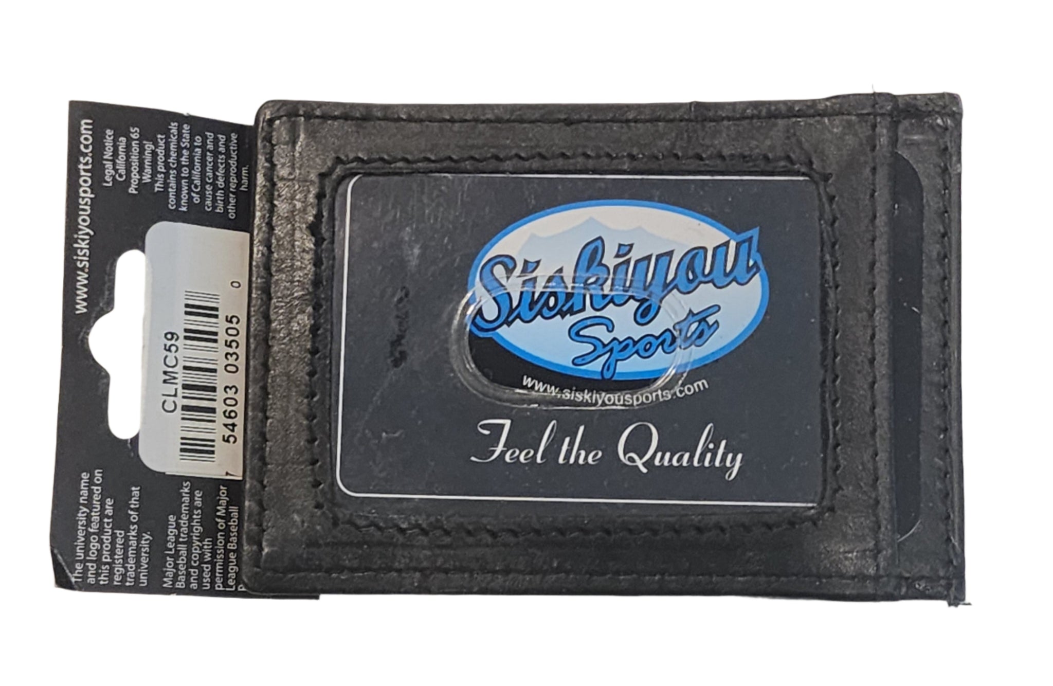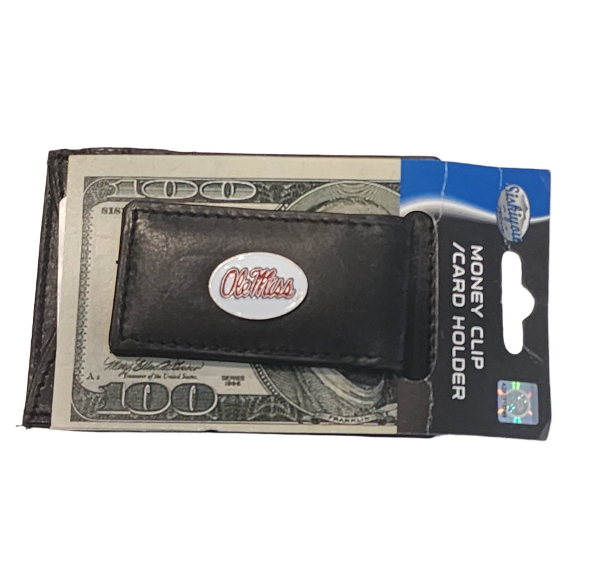 يتميز حامل النقود والبطاقات المصنوع من الجلد الأصلي من NCAA بمشبك نقود مغناطيسي وفتحات لبطاقات الائتمان على أحد الجانبين وفتحة لبطاقة الهوية بالصورة على الجانب الآخر. يتميز هذا الحامل متعدد الاستخدامات بشعار مصبوب ومطلي بالمينا على مشبك النقود.