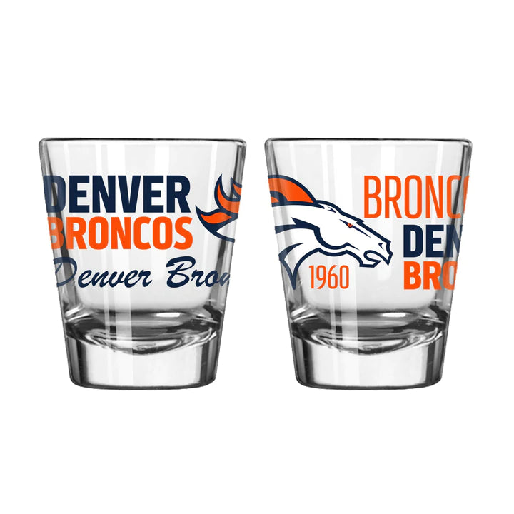Official NFL licensed team 2 oz elite shot glass. Laser etched team name along the side, along with a painted logo for extra style points. The stained glass bottom makes this glass stand out among the rest.