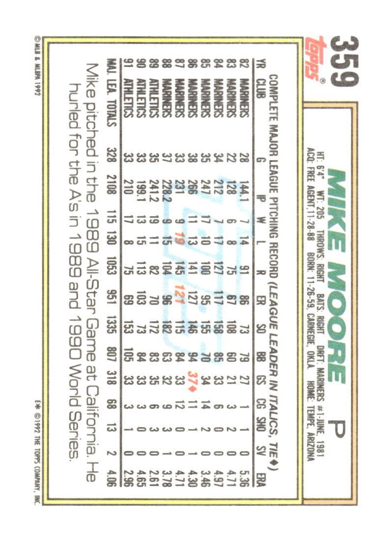 This is a nice example of a 1992 Topps #359 Mike Moore Gold