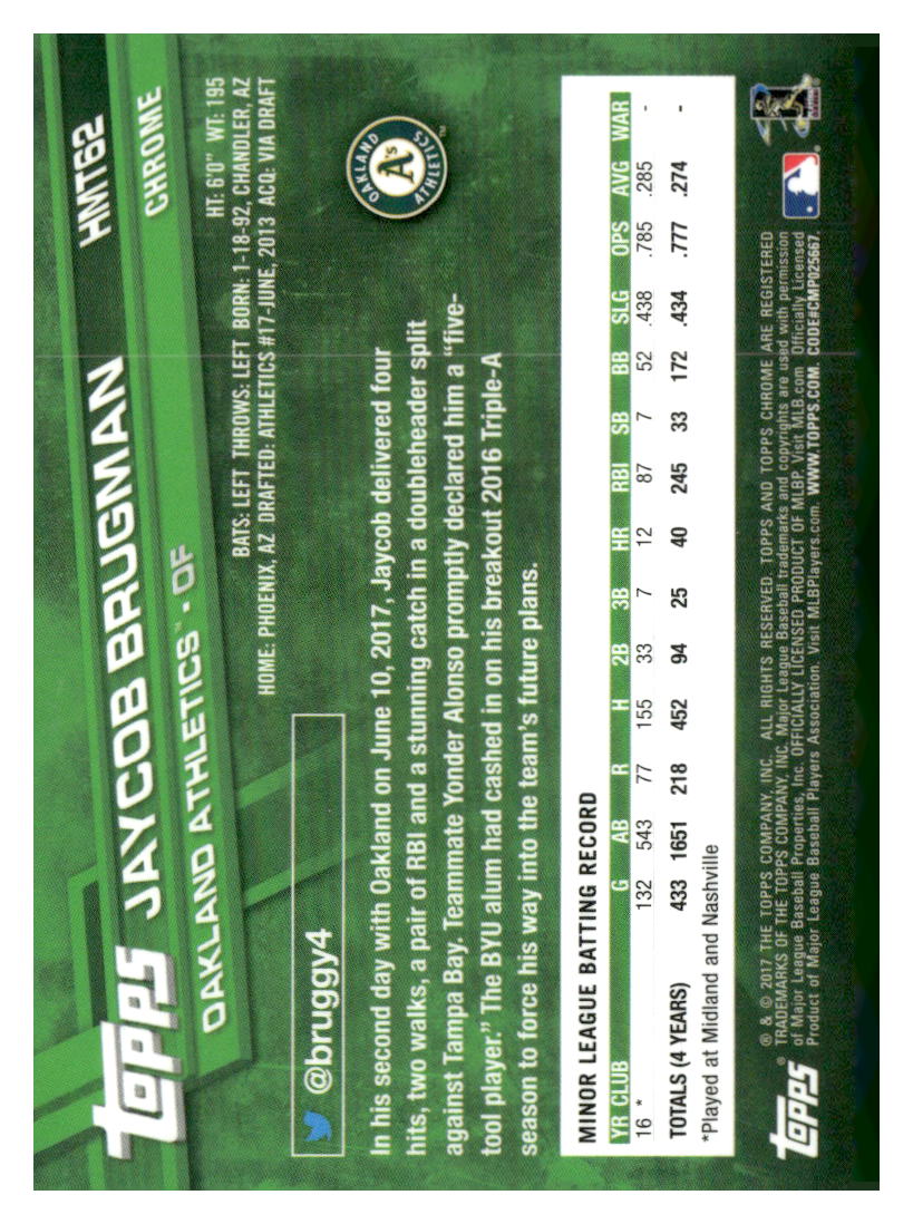 This is a nice example of a 2017 Topps Chrome Update #HMT62 Jaycob Brugman