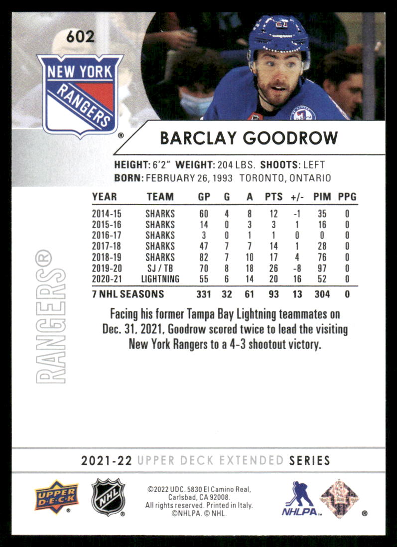 This is a nice example of a 2021-22 Upper Deck #602 Barclay Goodrow