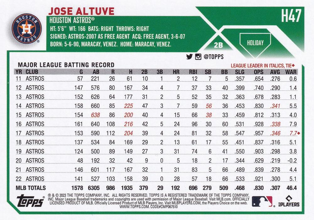 2023 Topps Holiday Jose Altuve H47 Houston Astros